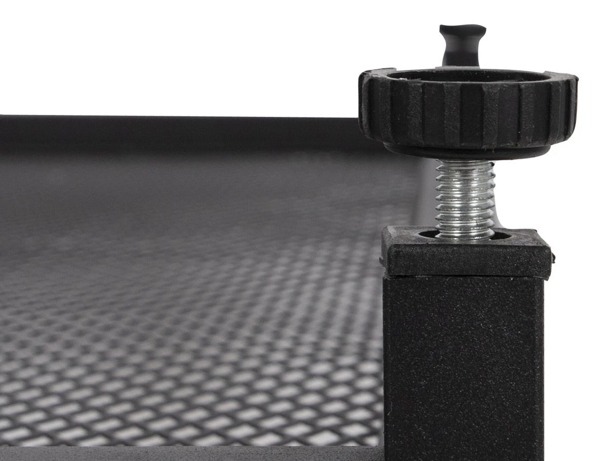 Wil jij in industriële stijl kamperen? Kies dan voor deze stijlvolle Grove kast! De kast heeft een zwart stalen frame wat in combinatie met het houtlook blad een stoere uitstraling heeft. Doordat de kast volledig demontabel is kan hij eenvoudig meegenomen worden naar de camping.