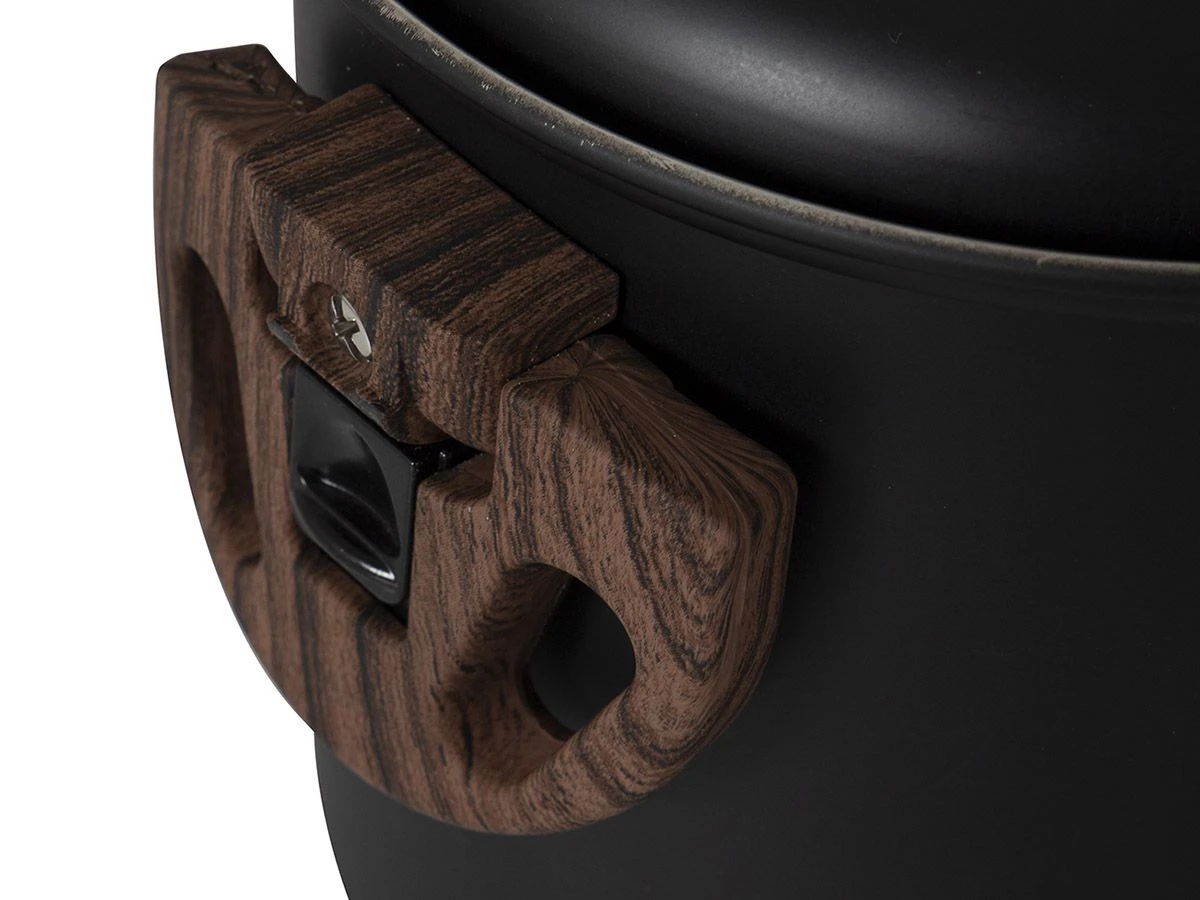 Wil jij met stijlvolle pannen lekkere maaltijden koken op de camping? De Industrial Hading van Bo-Camp past perfect in een industriële stijl dankzij de zwarte kleur en de houten details. De Hading pannen zijn gemaakt van RVS en beschikken alle 3 over een passende deksel. Zowel de handvatten als de knop hebben een houtlook en zijn hittebestendig. De handgrepen kunnen na gebruik eenvoudig om worden geklapt zodat de pannen volledig nestbaar en compact op te bergen zijn. Bespaart tot 40% ruimte! De pannen zijn smal en hoog en daardoor bij uitstek geschikt voor de beperkte ruimte op gaskomforen.