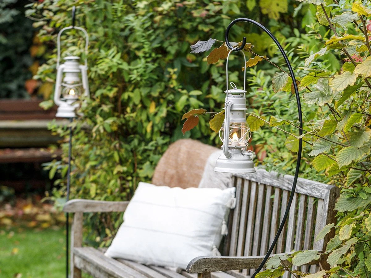 Is er geen mogelijkheid om de stormlantaarn op te hangen op de plek waar jij hem graag wilt? Gebruik dan deze staande hanger van Feuerhand! Deze lantaarn houder prik je in de grond en is zo op iedere gewenste plek te plaatsen.