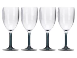 Op de camping genieten van een lekker welverdiend wijntje, maar neem je liever niet je breekbare wijnglazen van thuis mee? Kies dan voor de wijnglazen van Flamefield! Deze glazen zijn gemaakt van acryl en daarmee vrijwel onbreekbaar. De glazen zijn transparant met een mooie grijze kleur in de voet, zo heb je een standaard wijnglas die er toch stijlvol uitziet!