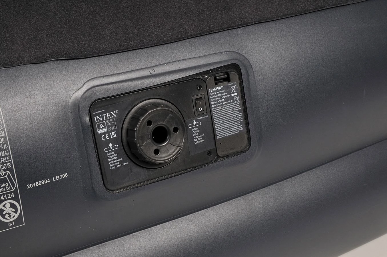 Het luchtbed is voorzien van een ingebouwde 220V pomp waarmee hij binnen 4 minuten opgepompt is. Geen gedoe meer met een losse pomp, maar alles netjes ingebouwd in het luchtbed. Houd er wel rekening mee dat je in de buurt moet zijn van een stopcontact.