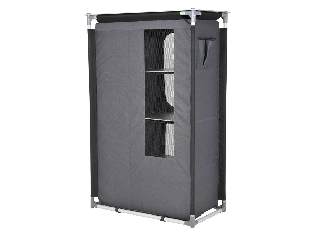 Als je twijfelt of je een hangkast of een kast met legplanken moet kiezen, dan is de Obelink Store de perfecte campingkast. De rechterkant van de kast is voorzien van 4 legplanken, maar als je liever een hanggedeelte wilt gebruiken dan kun je deze legplanken eruit halen en kun je de kledingroede gebruiken.