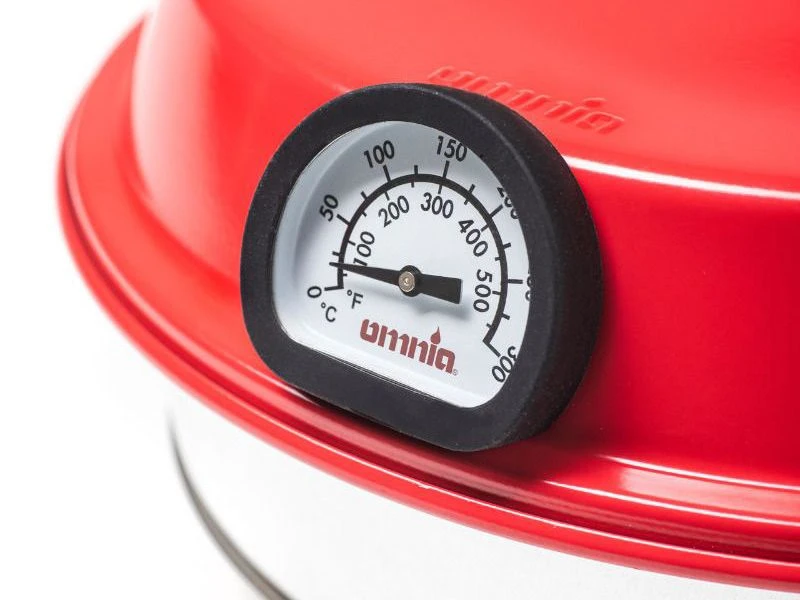 Met de Omnia thermometer kun je vanaf de buitenkant de temperatuur aflezen. En maakt het bakken met de Omnia oven een stuk makkelijker.
