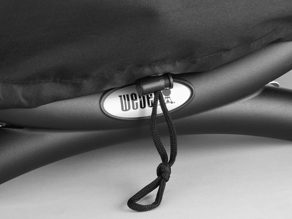 De hoes is geschikt voor de Weber Q1000, Q1200, Q1400, Q2000, Q 2200 en Q2400. Bevestigingsriempjes houden de hoes op zijn plaats.